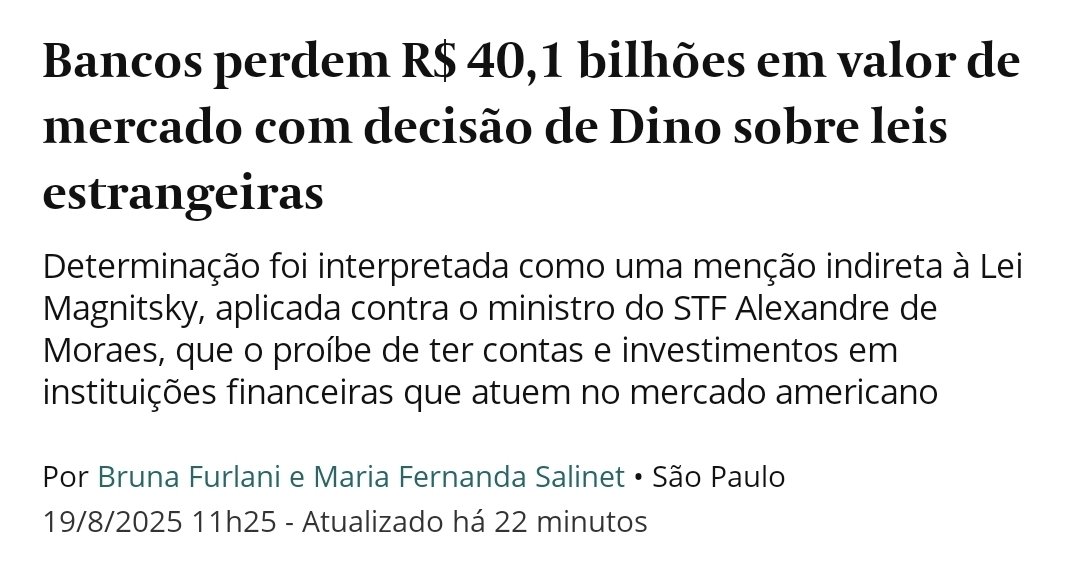 @NewsLiberdade Banco do governo federal, já está quebrado, vai receber as altas multas da lei magnitsky e quem vai pagar essa conta alguém sabe ?