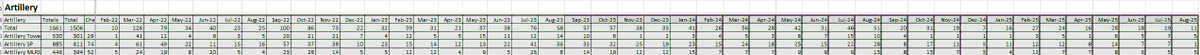 2) This is based of the Visually confirmed numbers by @WarSpotting a table of which is below for each month of the war, with the above graph being a 3 month average, looking at just August only 1 of 11 artillery systems has been an SPG.
