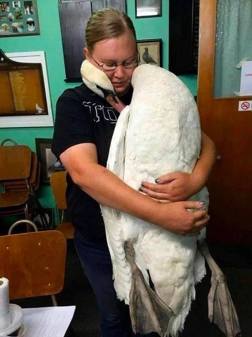 13. The beautiful moment a Swan embraced the vet who saved his life. ❤️ 🦢