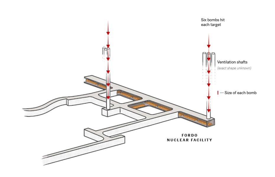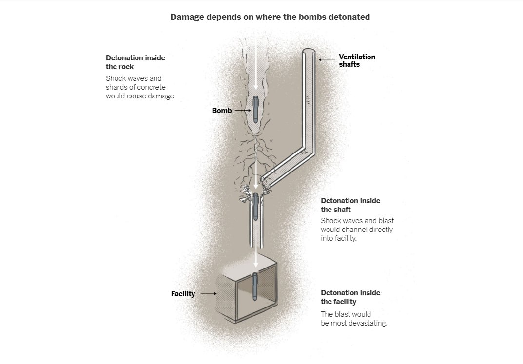 12/ میزان تخریب یک یا چندین بمب GBU-57 به جنس زمینی بستگی دارد که به آن برخورد میکند. چندین زمینشناس به نیویورکتایمز گفتهاند که براساس یک بررسی زمینشناسی که در سال 2020 توسط دانشگاه تهران (خداقوت به دستاندرکاران این تحقیق در دانشگاه تهران!) در سایت ژئوپرشیا منتشر شده ...