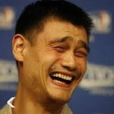 Yao Ming and his team mate having a goofy interview with the press was where he made the laughing expression.