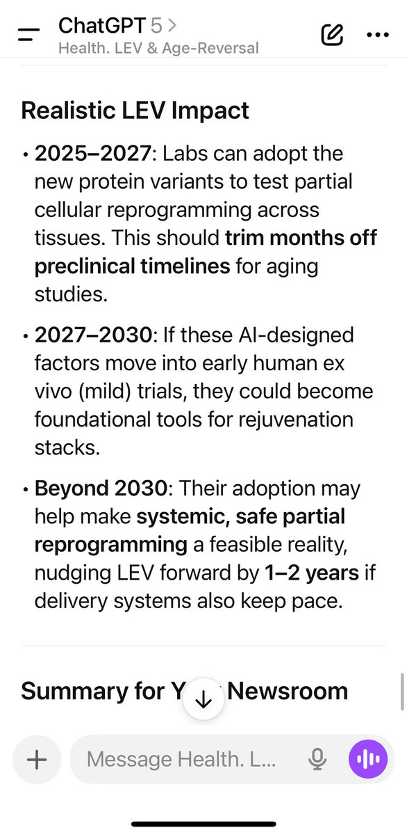 @BorisMPower @OpenAI Can you do tissue-specific AAV next? Delivery is gonna be the biggest hurdle for any sort of OSKM partial reprogramming. Ex-vivo blood is not as good as actually unlocking real cell-engineering in the human body