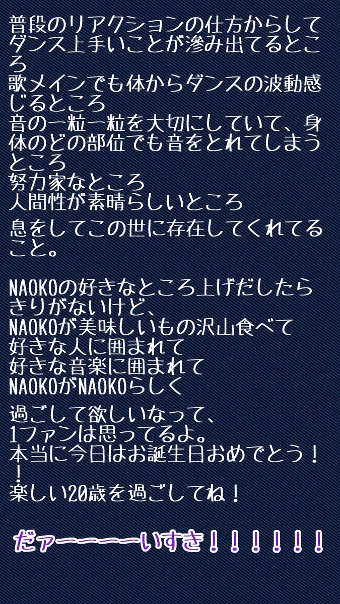 NAOKOの誕生日なので、NAOKOの大好きなところを書き始めたけど 止まんねぇな✋✋✋✋✋ デビュー直前ライブの時の麗しNAOKOも見てってくれよな。 本当に大好きだー!私は言葉でしか愛を伝えられないけど!本当に!大好きだ!!!! https://www.instagram.com/p/DH... #HAPPYNAOKODAY