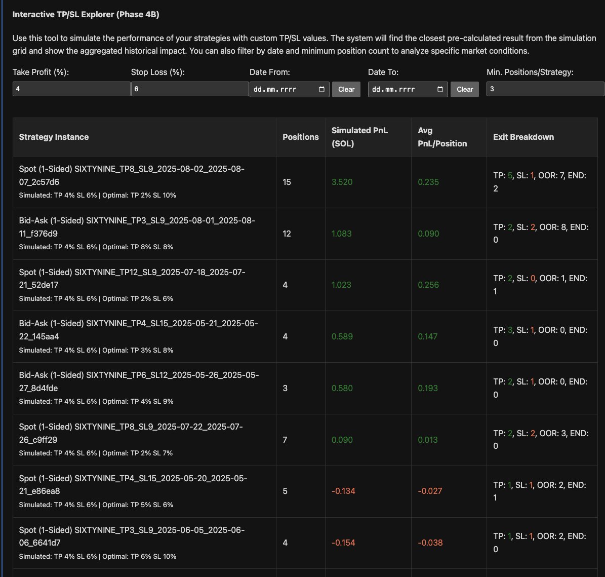 β¨ What's new in v5.0: - TP/SL time machine analysis (shows you the money you LEFT ON THE TABLE) - Interactive "what-if" tool (click & cry as you see missed opportunities) - Smart heatmaps revealing optimal 6% TP / 10% SL sweet spots