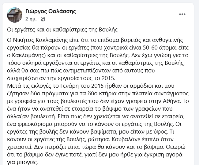 Νήμα για όσους δεν έχουν διαβάσει στο φέισμπουκ τις αναρτήσεις του Γιώργου Θαλάσση για τους υπαλλήλους της Βουλής ⤵️