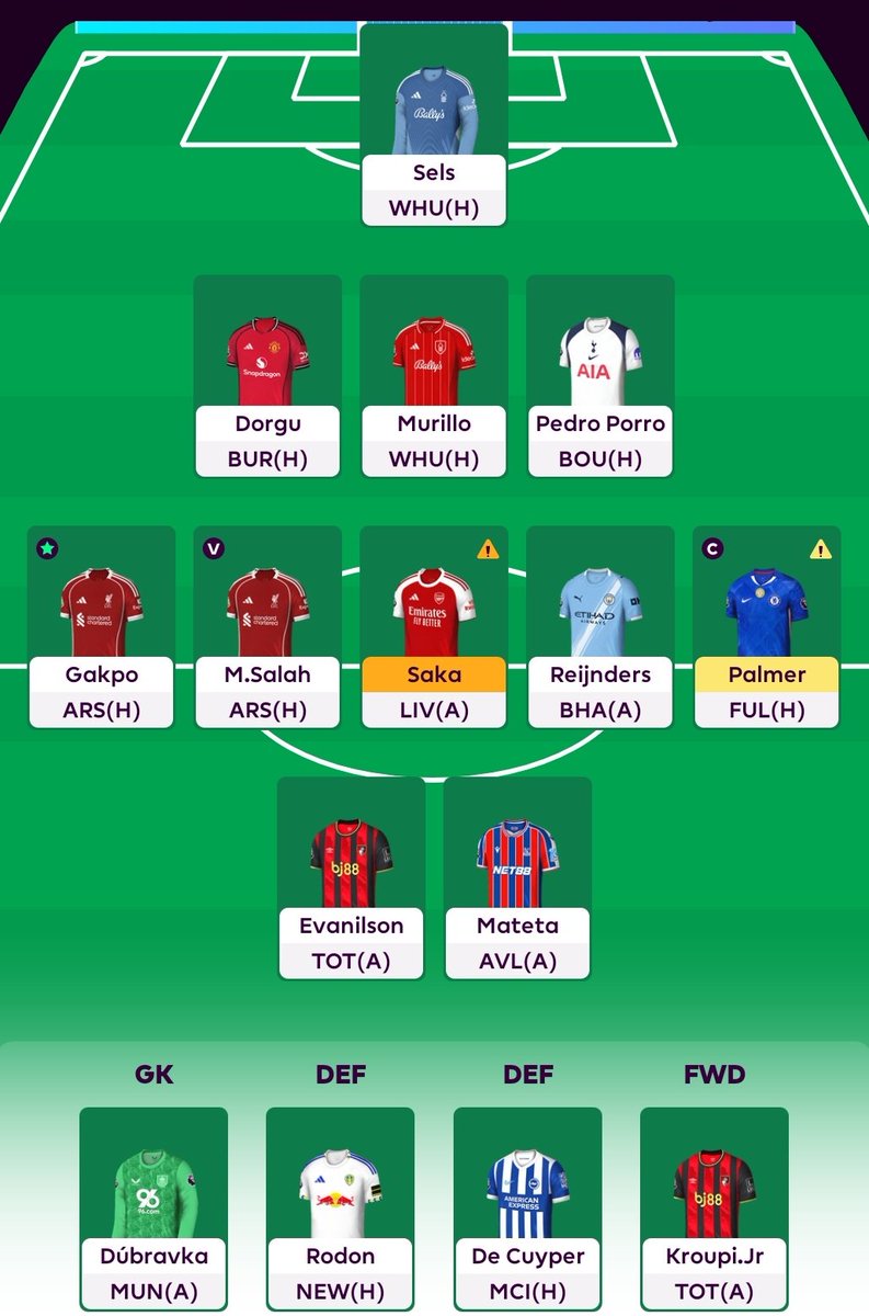 My GW 3 Team 📊 2 FTs, 0.0m ITB Potential transfer: Palmer ➡️ Sarr