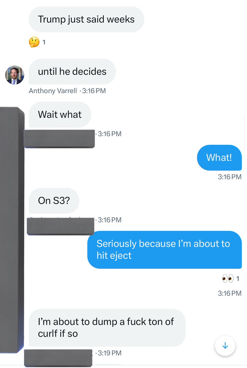 Iām blocking out names cuz no reason to blow up other people in the chat, but as u can see from the above image there was nothing but surprise. I sent @DougKass a message as well telling him I sent the original message to Anthony & explained the comedy of errors above. The reason