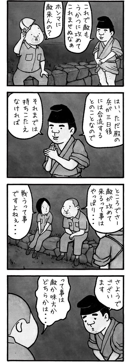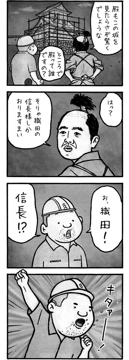@komute_no_nippo ノッブのための城作れたってなったら、興奮するだろうなあ…歴史的瞬間に立ち会えてるってテンション上がりまくる。 戦の合間の平穏って感じで、この後もしかしたら別れがあるかもと思うと切なさがすごいな… クレヨンしんちゃんのアッパレ!戦国大合戦の雰囲気を感じるなぁ