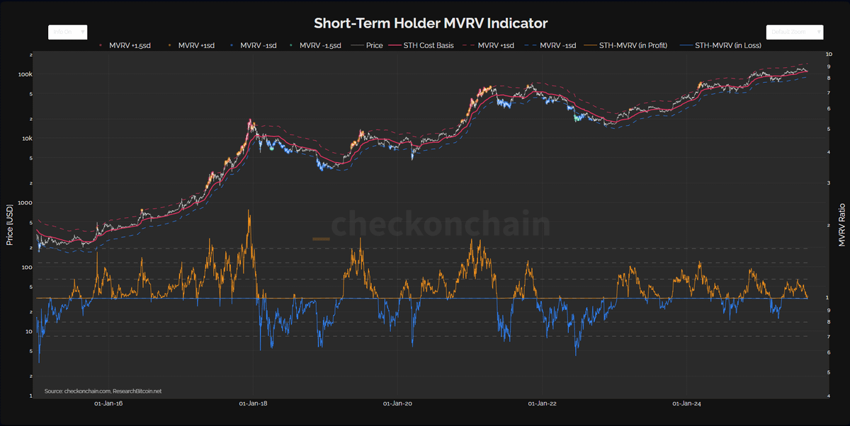 2. MVRV Bands This metric shows the ratio of $BTC market value to realized value When the value enters the upper bands, the market is overheated and the risk of a dump increases Today the indicator is still below critical levels, but the move in that direction has begun