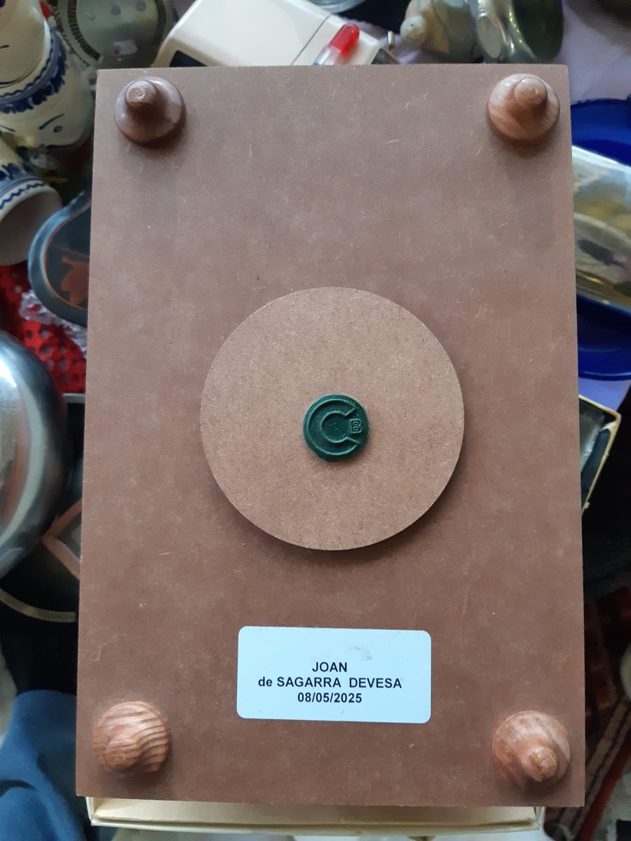 Només espero que prèviament hagin tret les cendres, perquè això estava avui als Encants. Joan de Segarra i Devesa va morir el 8 de maig i aquest logo verd és el del cementiri de Barcelona. [les fotos no les he fet jo, me les han passat]