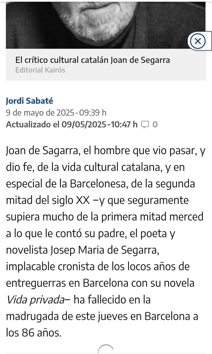 @velasc_alberto Ospa! Recordo que abans de l'estiu em demanava que se n'hauria fet del Sagarreta, l'inefable fill del gran J. M. de Sagarra. El que deia als seus articles a LV ho agafava amb pinces, però el que ha vingut després... dep.