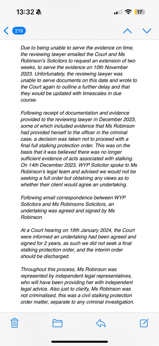 round. As you can see from the response I now have, when we presented some evidence to prove allegations were false when I attended a voluntary interview, we also presented further evidence and many witness statements to support me. On receipt of this, WYP stepped down