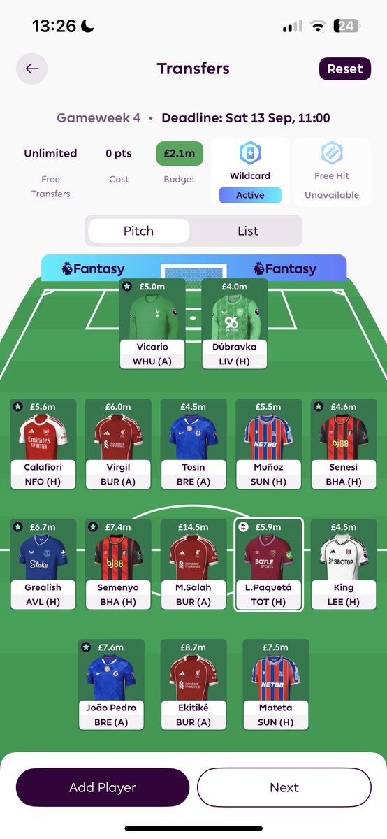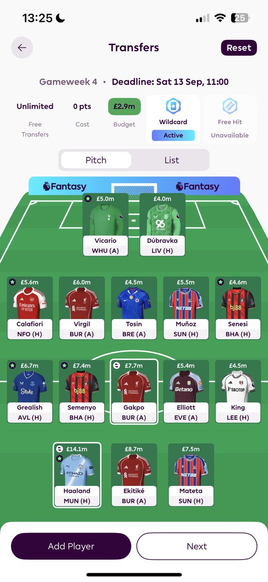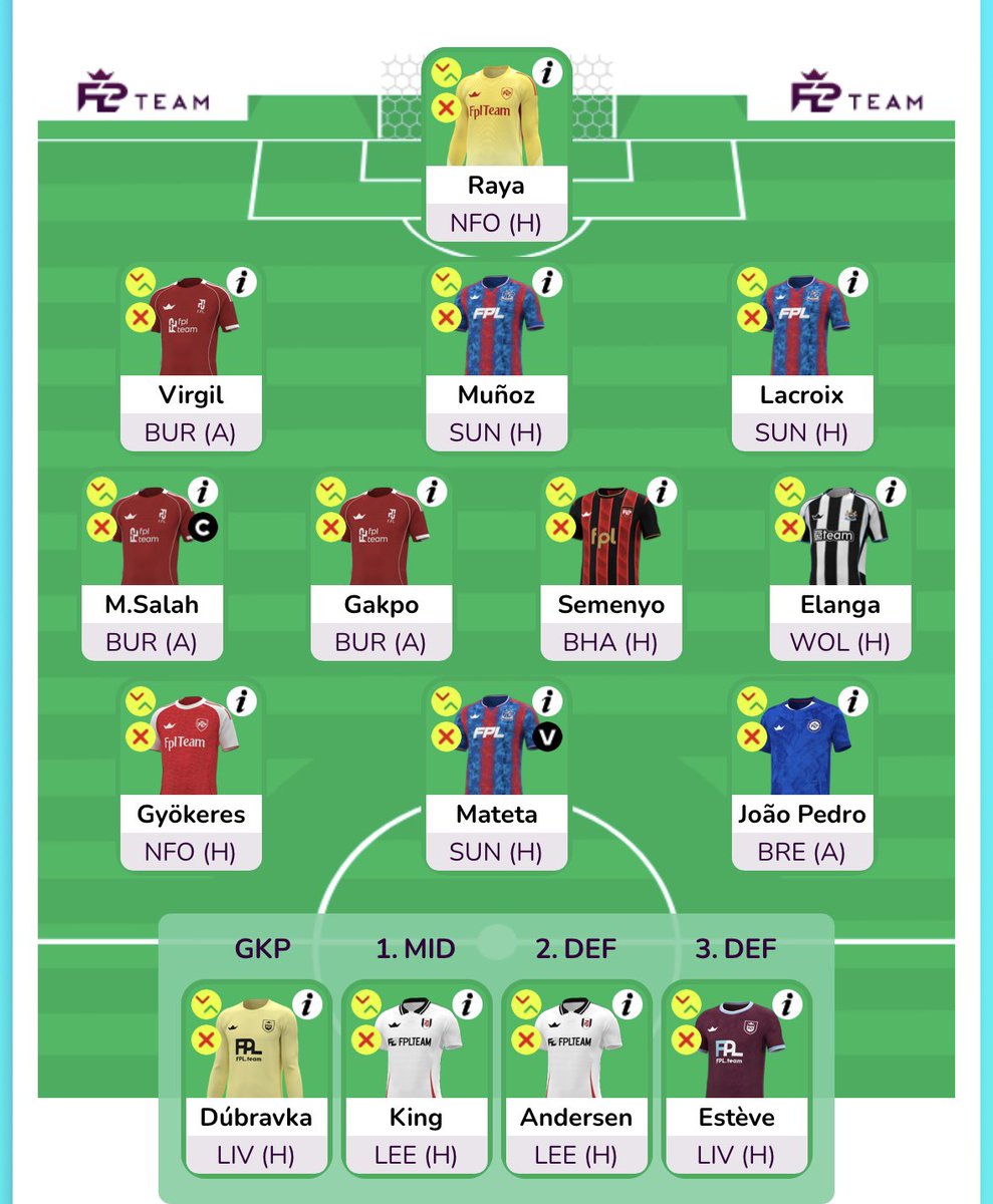 @CharlieVantFPL 1 or 2? made it so it allows me to upgrade to isak if i need to as well. and rosin may change as well as vicario