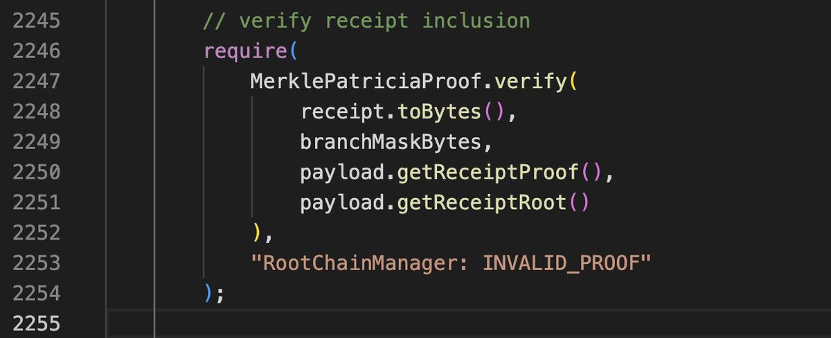 @Shibtoken 4/ For each exit() call in the root chain manager contract, it verifies if any request is a legitimate leaf under that root hash. As soon as the attacker controls the root hash, they can manipulate as many leaves as they want.