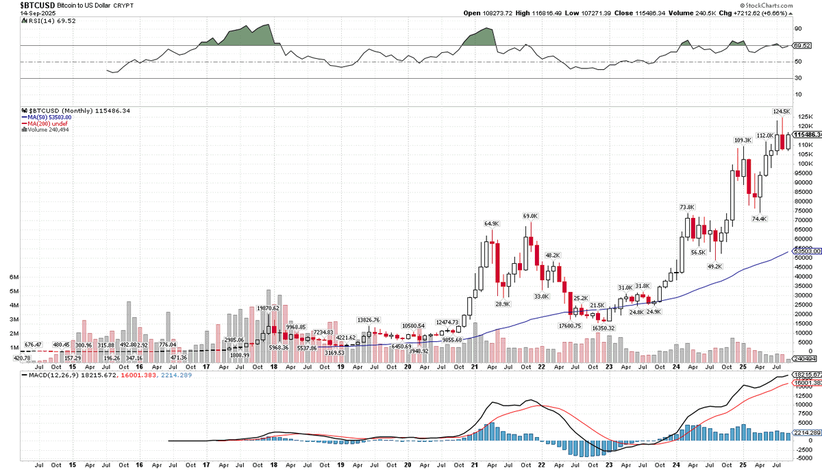 @mrofwallstreet Monthly candle for $BTC shows an outside bar forming (using the body of the candle, not the entire range), pointing to upside ahead! If it can take out key resistance near $117K, it could run up to test August high above $124K pretty quickly!