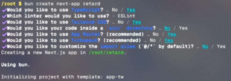 3. make your site (nextjs, here) bun create next-app <app_name> && cd <app_name>