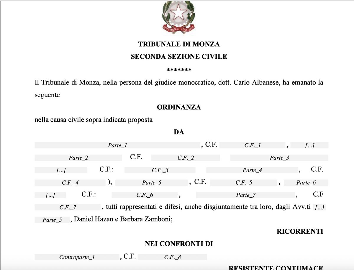 19/19. Non risulta che il provvedimento sia stato reclamato (o almeno, così si evince consultando i registri telematici pubblici del processo civile). È fatto comunque salvo il diritto dei ricorrenti di introdurre la causa di merito Cosa ne pensate di questa decisione?