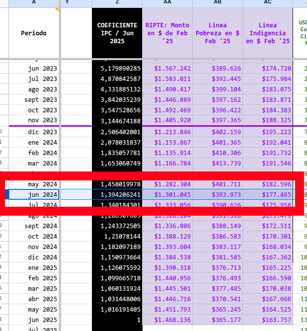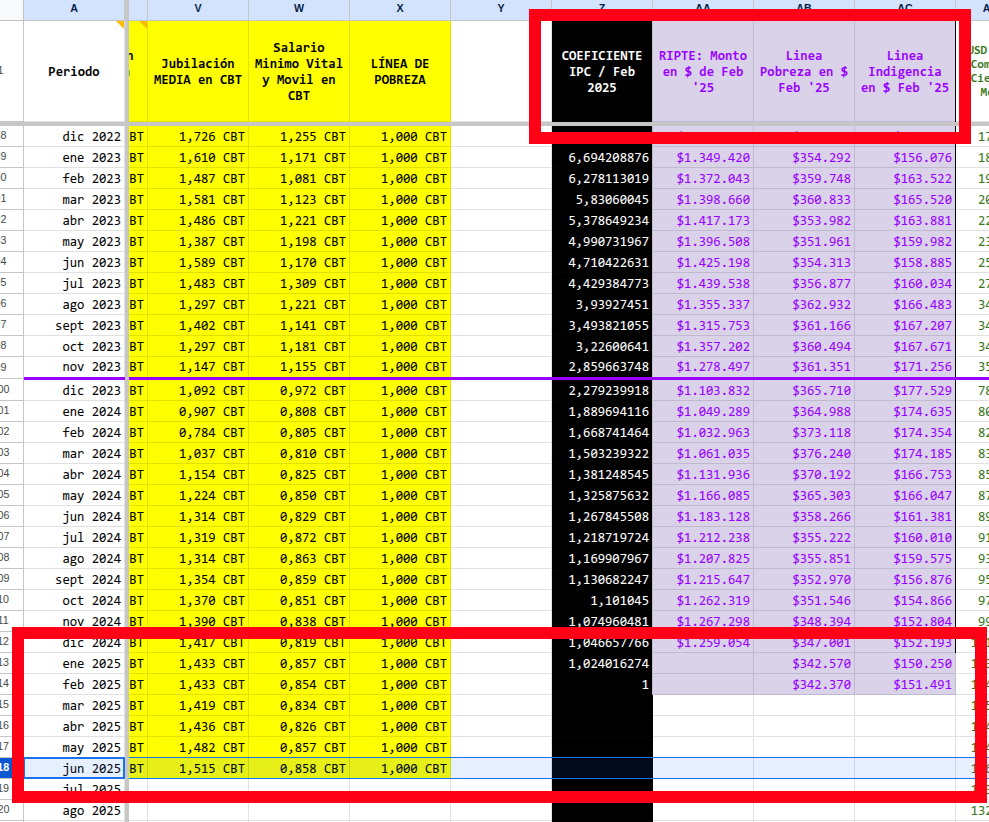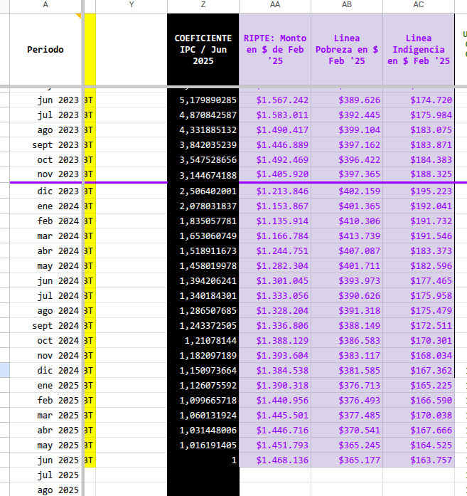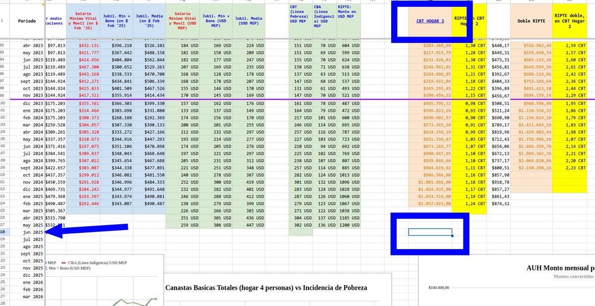 Banquen que busco los datos para expresar el RIPTE en Canastas Básicas Totales (adulto equivalente y Hogar 2). Si vieran el QUILOMBO que es esta planilla. Tengo que ordenarla en algún momento pero me da fiaca.