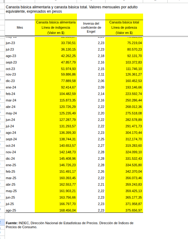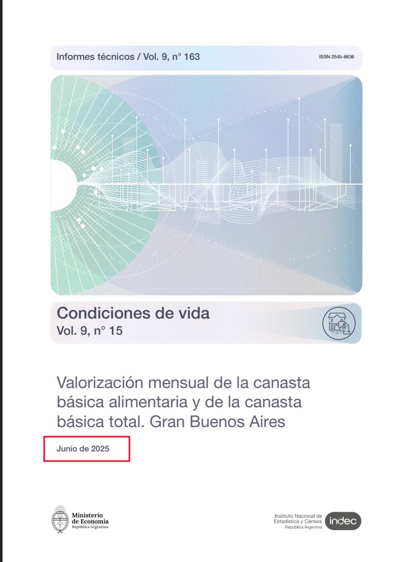 Les muestro lo que estoy haciendo. Es una paja. Por ej googleo: canasta basica total junio 2025 El primer resultado suele ser el informe técnico que necesito. OJO; confirmar que es del mes adecuado, a veces puede ser el incorrecto, especialmente si buscás meses recientes y lo que
