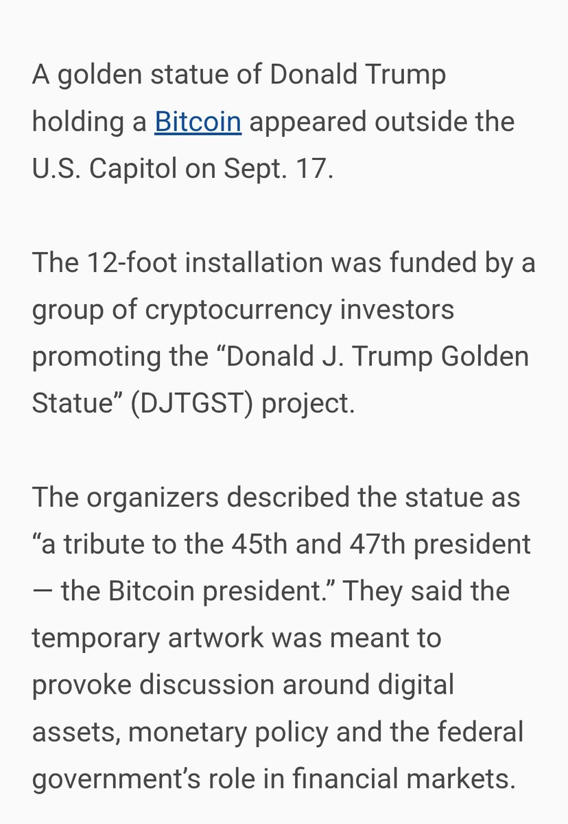 @AFpost Trump did not do it tho, did he ? “Memecoiners plonked a giant golden statue of President Donald Trump holding a Bitcoin outside the US Capitol as part of a http://Pump.fun livestream stunt on Wednesday, as an ode to the crypto-supporting president.”