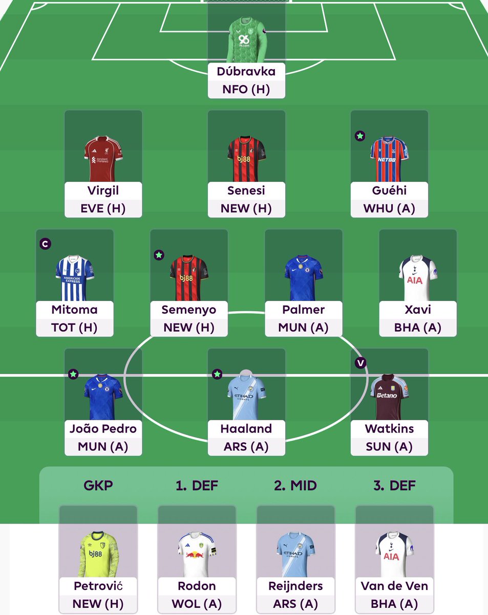 @CharlieVantFPL Bit of benching headache this week. This is where I am at the moment.