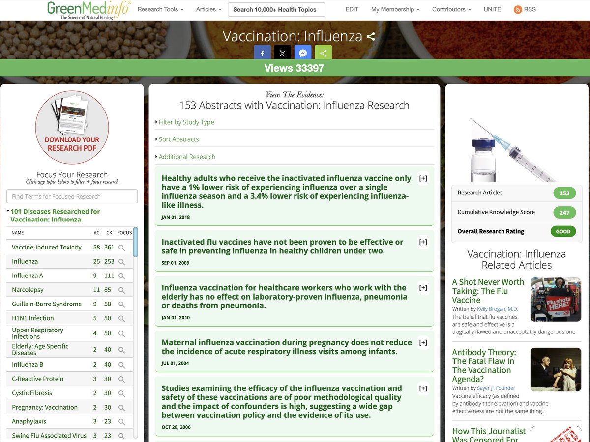 1/ 💊 THE DATA DOESN'T LIE: Cochrane reviews: "No credible evidence" flu vaccines reduce complications in healthy adults Elderly: "Poor quality evidence provides no guidance" after 75 studies over 40 years Cleveland Clinic 2024-25: Vaccinated had 27% HIGHER flu risk*