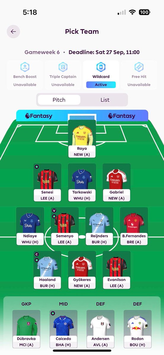👀 Final wildcard checklist: ✅ 3 Arsenal (Raya/Gabriel/Timber?/Gyokeres) ✅ Haaland locked ✅ 1–2 Spurs (Kudus/RIcharlison/VDV) ✅ Target the Talisman ✅ Plan for BB/TC Keep it simple. Don’t overthink it.