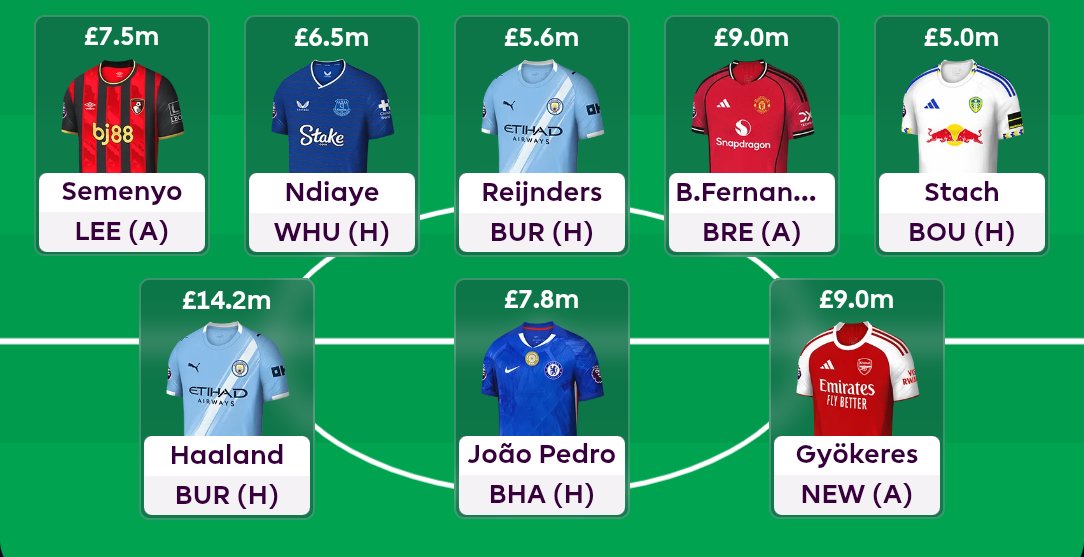 @BigManBakar @WGTA_FPL Meanwhile. Here’s my attacking seven for GW6 without using WC and enough cash to get Gyokeres for Mateta in GW7: