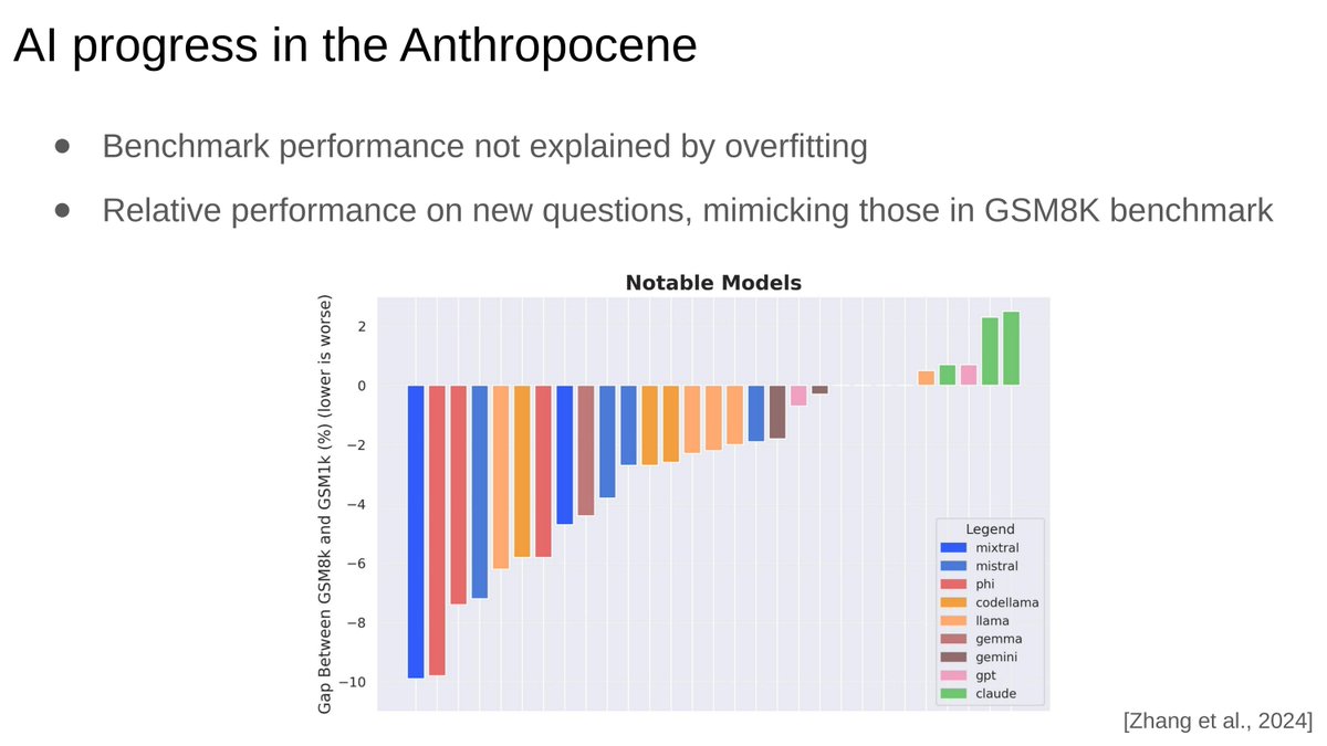 The first time I gave this talk, [famous AI researcher] was in the audience, and insisted that improvements on benchmarks were driven by benchmark questions being added to the training set. Here is an experiment directly addressing this. A group of researchers at Scale created