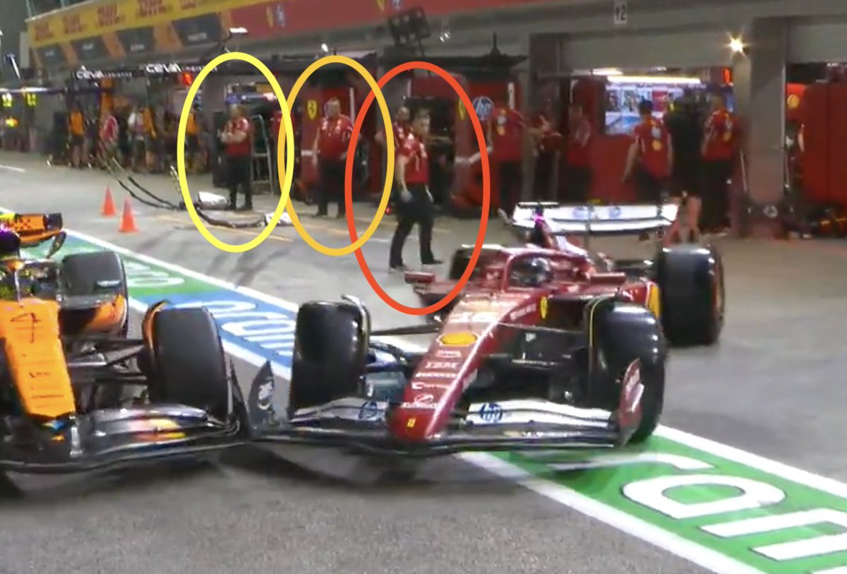 This doesn't happen often! ๐ฎ Here is how Charles Leclerc and Lando Norris ended up colliding in the pit lane in FP2 ๐ฅ #F1 #SingaporeGP