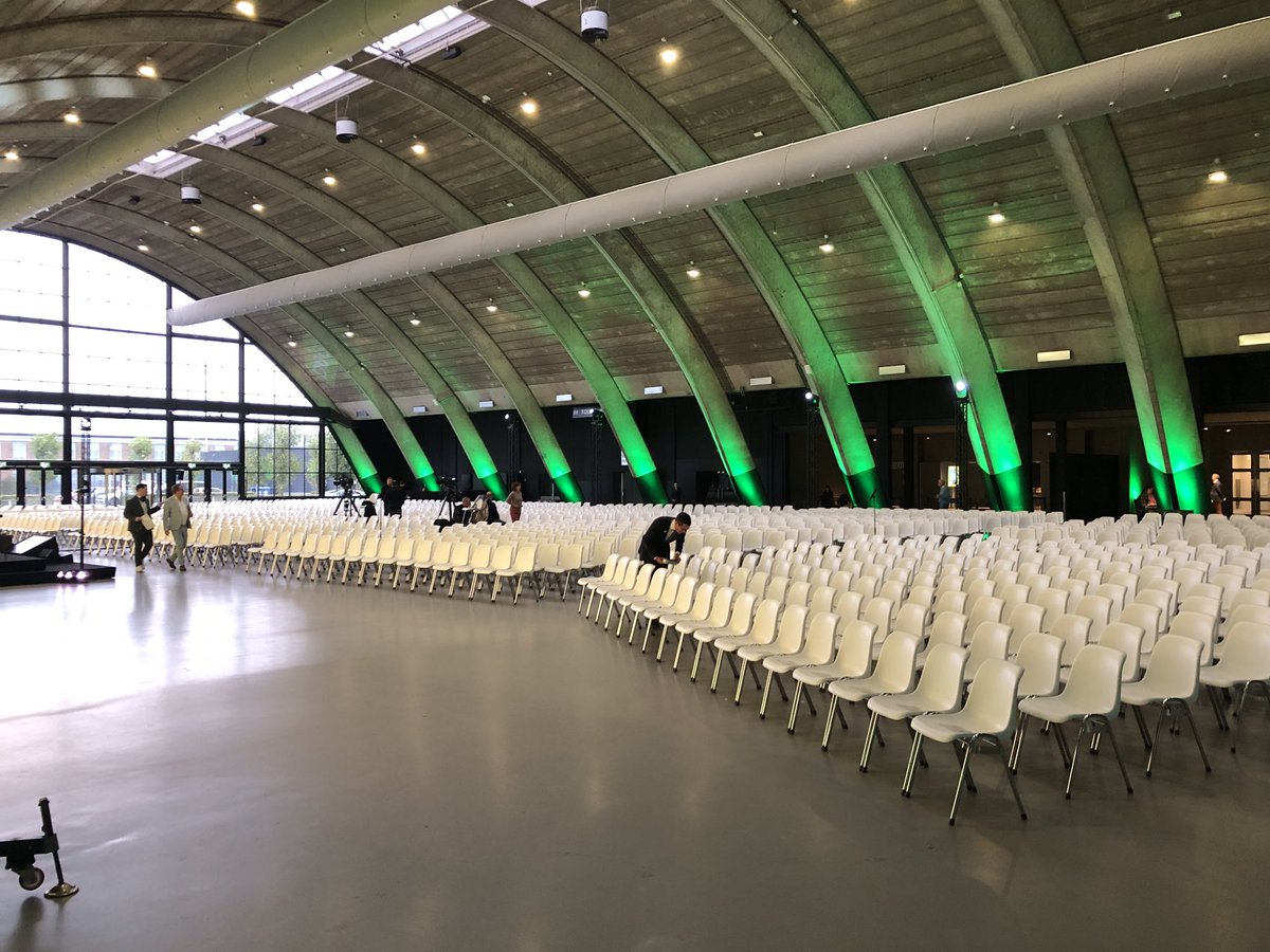 Zaaltje. Bij de VVD stonden een jaar geleden in deze hal minder stoelen.