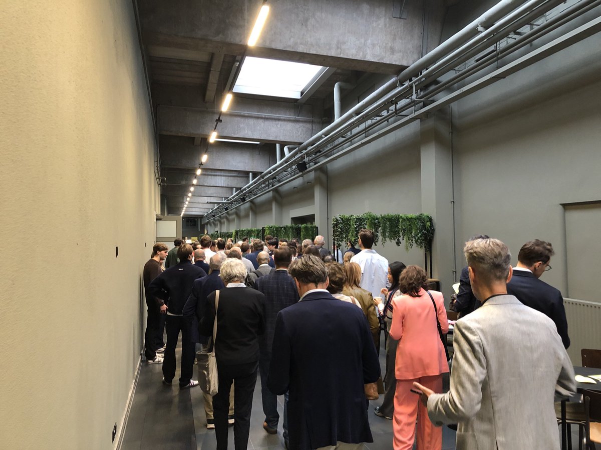 Net begonnen, meeste mensen niet binnen en nu al een rij bij de koffie.