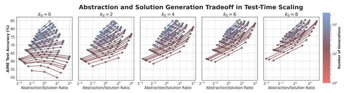 They also studied how to spend inference compute: Should you sample more solutions, or more abstractions? Turns out, once you’ve handled local logic errors, it’s way better to spend compute on generating diverse abstractions not more chains-of-thought. Breadth > depth.