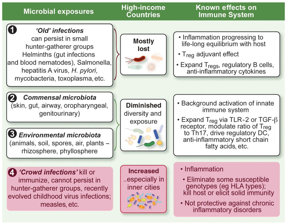 The misleadingly named “Hygiene Hypothesis” is more accurately framed as the “Old friends hypothesis.” We co-evolved with friendly bacteria & some parasites. We did NOT co-evolve with the *crowd infections* of mass travel, mega-cities, & indoor confines. 4/