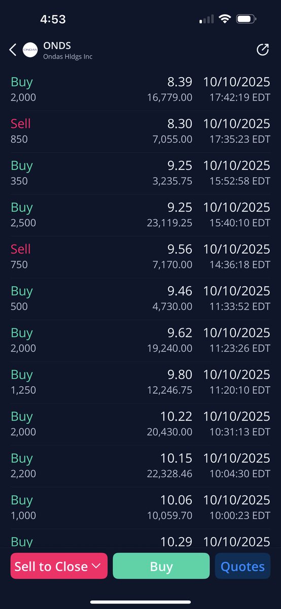 @mvcinvesting $ONDS, I had just trimmed 60% of my position the last two weeks before yesterday. Bought the dip because it was the most impacted in yesterday’s shenanigans. Will ride it back up with a smile.
