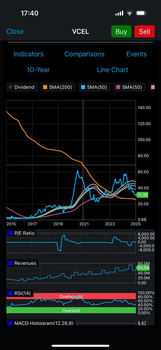 @mvcinvesting $VCEL, Vericel. Its new product, MACI, is now commercially available. It's a way to grow durable cartilage using a patient's own cells to repair a damaged knee joint. It’s a better alternative to joint replacement. -$1.7B Market cap - outside of tech - solid balance sheet 1/X