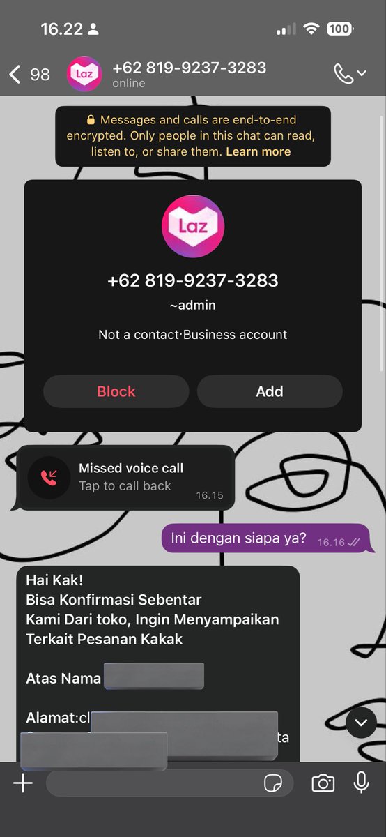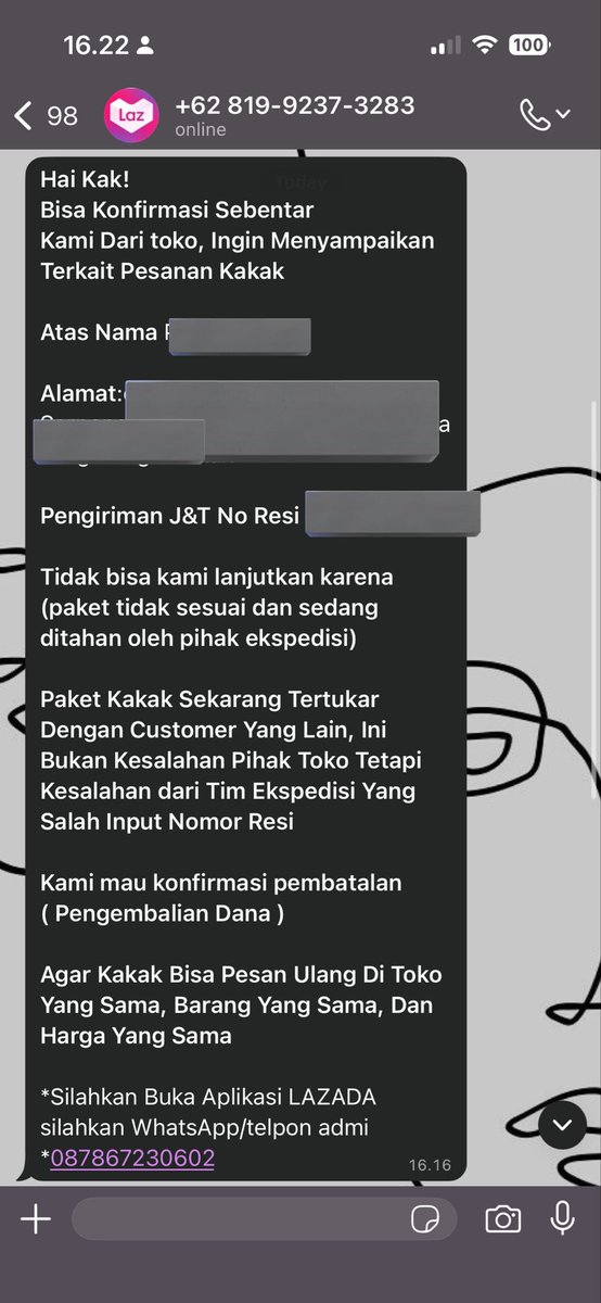 @kutukobra Iihhh saya juga baru tadi di-WA gini!! Tapi uda lapor dan open ticket ke @LazadaID parah banget mana alamat dan nomor resinya bener lagi, kan jadi takut mau pake aplikasi tersebut tp bocor begini ðŸ˜