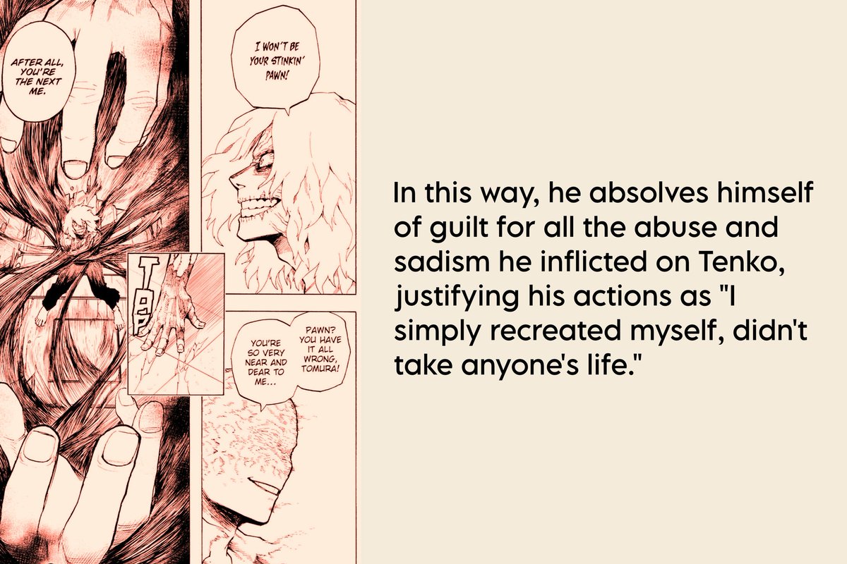 AFO's desire for revenge also plays a role here. Tenko is the one on whom he displaces his resentment toward Yoichi, so by the end their relationship is revealed as extremely sadistic. AFO takes everything from Tenko in the cruelest way, experiencing the very control he lacked.