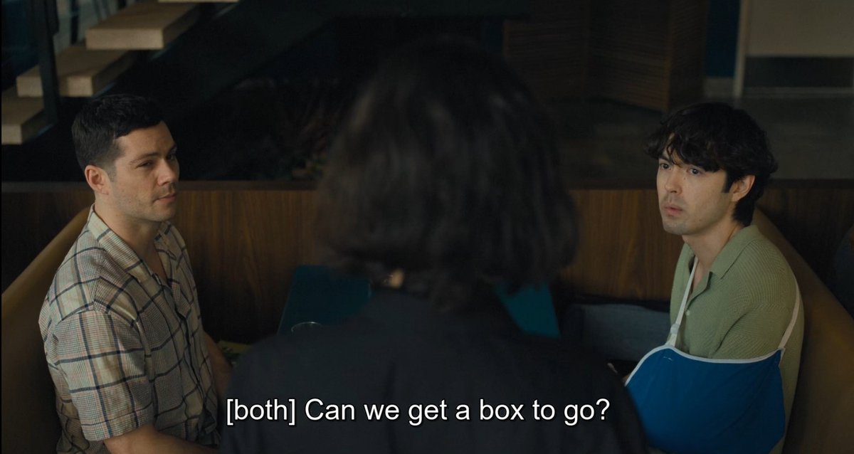 "Can we get a box to go" is pretty neat too because they both will take half a sandwich home with them, which is an interesting twin separation symbolism. I do appreciate that it isn't a proper redemption for Dennis and it does kinda come across as a goodbye scene.