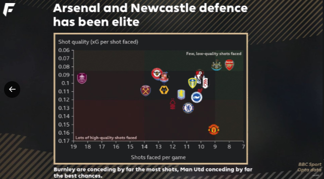 π Double Arsenal attack or defence? Arsenal have been the best defensive team according to xGC in the league, but the 4th best according to xG They are 9th= for xG/shot despite being 2nd for shots taken Facing the lowest quality shots in the game through both xGC/shot and