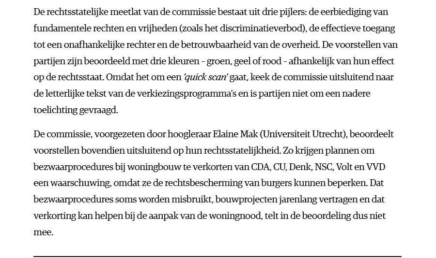 @LydiaStoop Wat, @LydiaStoop, NRC schrijft over het beoordelen van voorstellen door Nederlandse Orde van Advocaten in hun 'Toets van #TK2025 verkiezingsprogrammaâs'. âDat verkorting van bezwaarprocedures bij woningbouw kan helpen bij aanpak van woningnood, telt in de beoordeling niet mee.â