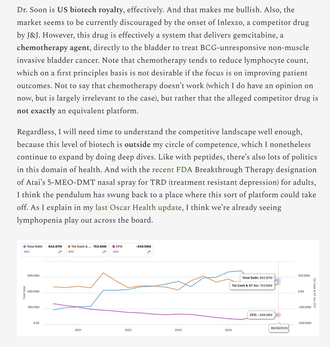 8. While I continue to study the competitive environment, I don't see the logic in claiming that $JNJ Inlexzo is a real competitor to Anktiva. This view is a fundamental misunderstanding of both the problem $IBRX aims to fix and how Anktiva a.k.a the Bioshield does that.