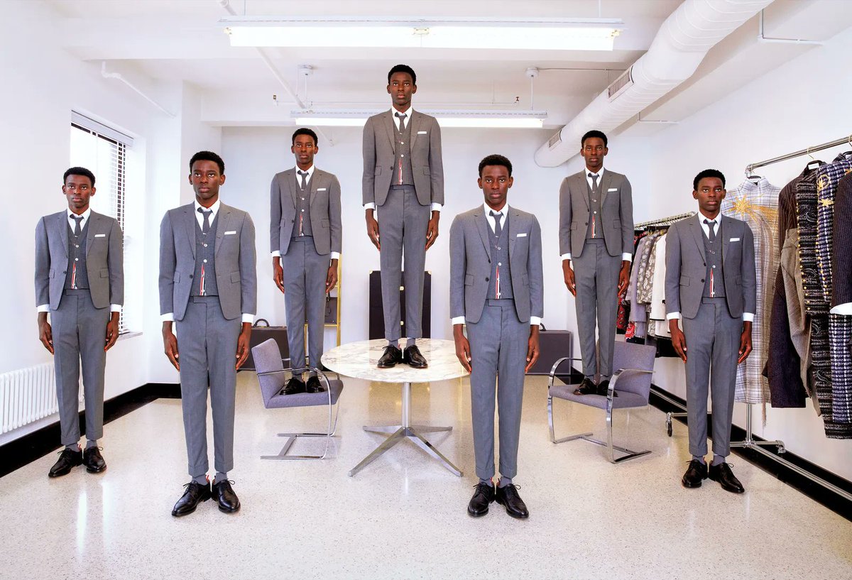 To understand it, we must first go back to the early 2000s, when designers like Raf Simons, Hedi Slimane, and Thom Browne shrank men's clothing to counter signal the "macho" oversized clothes of the 80s and 90s. They wanted a thinner, more adolescent Euro look.