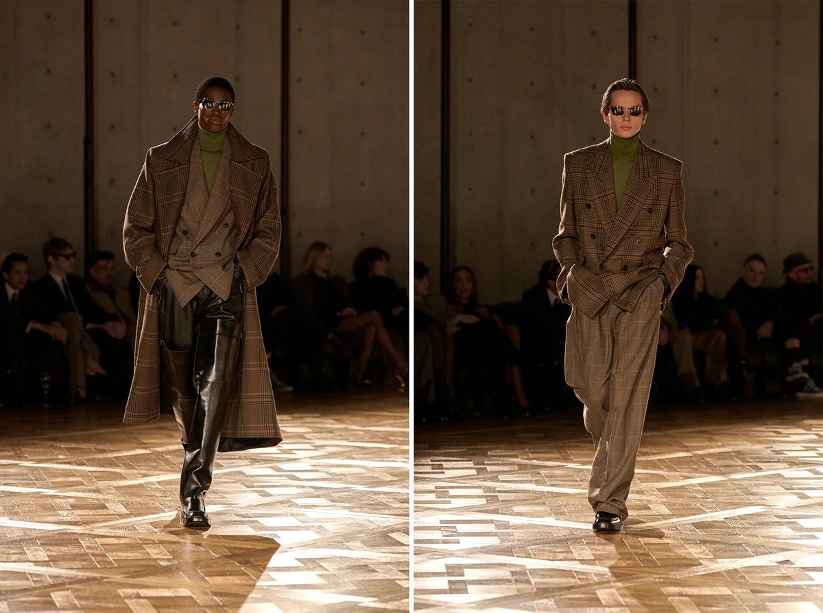 So much of menswear has swung in the opposite direction: fuller silhouettes, heavier shoulder pads, pleats. Here are some images from the FW25 Saint Laurent show earlier this year. Rocky often wears the line and gets a lot of praise for it in the fashion press.
