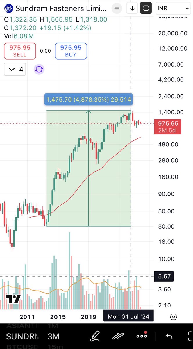 @AimInvestments #SUNDRAM- 33 to 1500+ in 11 years My 18,500 Rs investment turned to 8.40 lakhs during that peak CMP 975 still holding it 💚 Another one is #Suzlon 2.5 to CMP ❣️