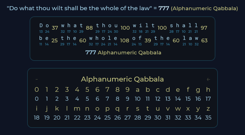 Then we have the other major riddle of Liber AL vel Legis: the 'grid page', whose secrets still haven't been fully decrypted or explained until this day — at least not in a completely satisfactory way. The alphanumeric solution, again, brings a fresh new perspective on what the