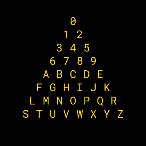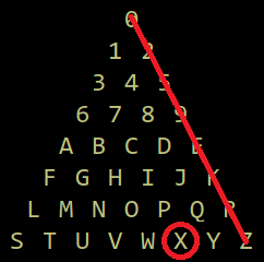 Alphanumeric Qabbala, the English Trigon, and the riddles of Liber AL vel Legis —[ MEGA THREAD ]— One of the most interesting properties of the 'English Trigon' (i.e. the alphanumeric triangle) is that it contains exactly 4 rows for the digits 0-9, and 4 rows for the letters