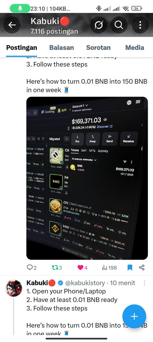 1. Open your Phone/Laptop 2. Have at least 0.01 BNB ready 3. Follow these steps Here’s how to turn 0.01 BNB into 150 BNB in one week 🧵