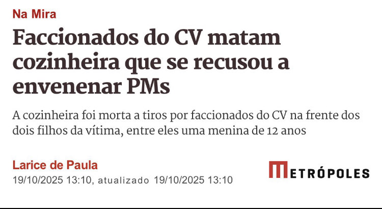 @UNHumanRights Yes, be “horrified.” Rio de Janeiro state's 2,500 police officers, lacking tactical support from Lula da Silva's leftist government (despite Article 144 of Brazil's Federal Constitution), faced extreme violence, with 4 officers killed. The rest were narco-terrorists.
