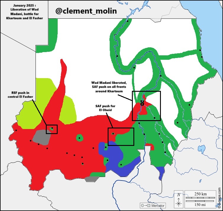 Wad Madani fell in january 2025, while the SAF pushed to lift the siege of El Obeid.